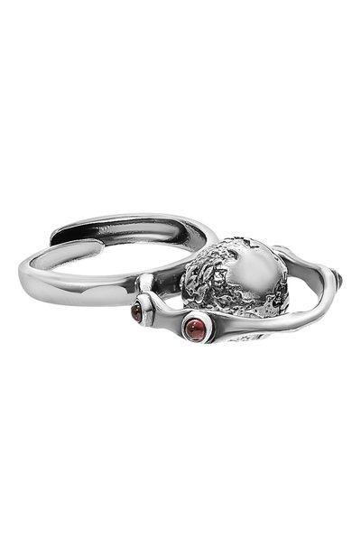 Над незамкнутой основой кольца из ювелирного сплава с серебряным покрытием поднимаются Звездные врата из одноименных фильмов и сериалов. Роль характерных ярких шевронов, которыми управляется телепорт, играют четыре небольших гранатовых кабошона. Круглая форма камней рифмуется с трехмерным изображением Земли, застывшим в центре декора.