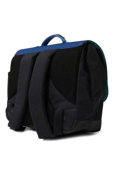 На создание портфеля с эргономичной спинкой и широкими регулируемыми лямками, разработанного для учеников начальной школы, команду марки вдохновили старинные кожаные ранцы. Для пошива модели с разноцветными аппликациями и вышивкой использовали прочный непромокаемый текстиль с тефлоновым покрытием. Аксессуар с клапаном, дополненным двумя замками-защелками, открывается и закрывается легким нажатием. В два отделения поместятся тетради, учебники, ланчбокс и пенал.