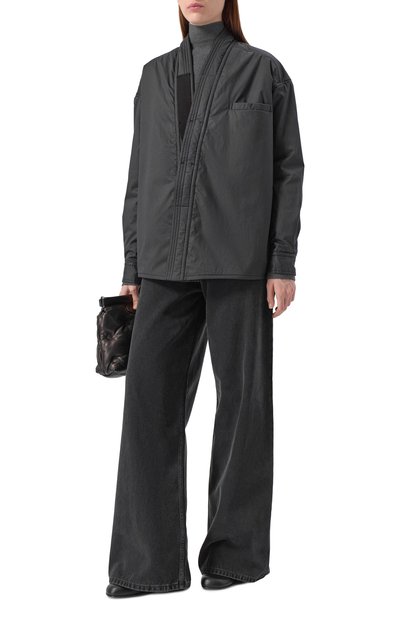 Мастера бренда, основанного Марио Прада, выполнили черную куртку из тонкого нейлона Re-Nylon, переработанного из пластикового мусора и сетей, выловленных в океане. Такой подход к выбору материала помог сэкономить первичные ресурсы и снизить углеродный след. Спереди модель с отложным воротником декорировали крупным белым логотипом. Низ затягивается шнуром, продетым в кулиску.