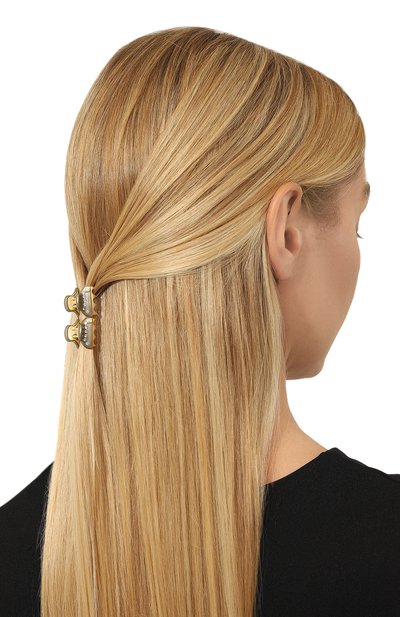 Заколку-краб оттенка хаки мастера марки выполнили вручную из легкого прочного ацетата, отполированного до гладкости. Яркий блеск модели добавляют миниатюрные сверкающие кристаллы, а об ее принадлежности бренду говорит рельефная золотистая эмблема. В комплекте – еще одно точно такое же изделие.