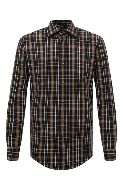 Для пошива коричневой рубашки в клетку использовали мягкую легкую ткань из длинноволокнистого тщательно очищенного хлопка с небольшим добавлением эластана. Гладкий приятный на ощупь материал не препятствует циркуляции воздуха, поддерживая оптимальную для тела терморегуляцию в течении всего дня. Крой модели отвечает за комфортную посадку и свободу движения.