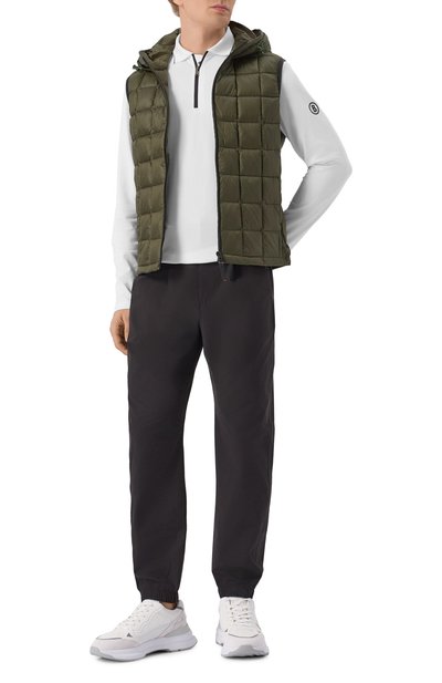 Команда марки поэкспериментировала с джоггерами, привив им гены джинсов. Вместо привычного трикотажа для пошива модели с заниженной линией шагового шва и регулируемым поясом-кулиской использовали плотный хлопковый деним. В состав материала включили стрейчевые нити, поэтому брюки с задними карманами на молниях лучше тянутся и не сковывают движения.