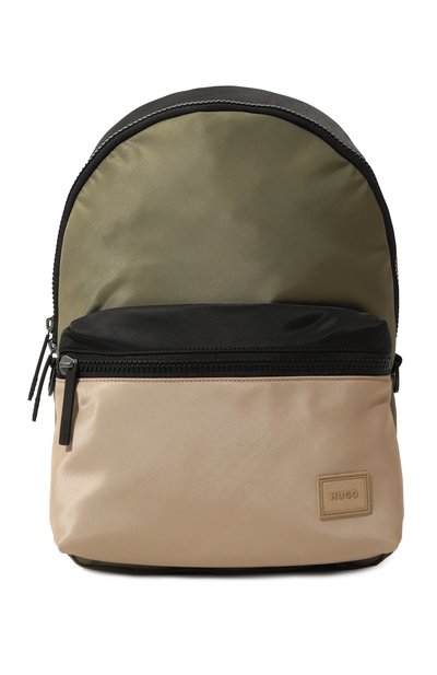 При пошиве рюкзака с крупным накладным карманом дизайнеры бренда, основанного Хуго Фердинандом Боссом, скомбинировали гладкий переработанный нейлон черного, зеленого и бежевого цветов. Такой подход к выбору материала помог уменьшить нагрузку на экологию планеты. Внутри поместятся документы формата А4, портмоне и смартфон.