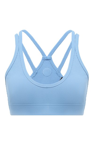 Для пошива голубого укороченного топа с двойными узкими бретелями дизайнеры марки выбрали мягкий фактурный трикотаж с добавлением волокон эластана. Этот нежный, приятный на ощупь материал тянется во все стороны, поэтому модель плотно облегает фигуру, но не сковывает движения. В качестве декора — небольшой фирменный патч сзади.