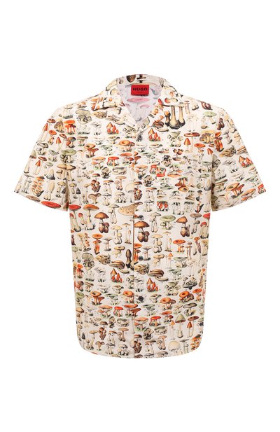 Разноцветная рубашка с короткими рукавами поможет сделать повседневный комплект с черными брюками и белой футболкой более непринужденным. Расслабленный вид модели придал красочный принт, как в учебнике по грибоводству. Для пошива изделия использовали тонкий легкий хлопок, поддерживающий оптимальный микроклимат в жаркую погоду.