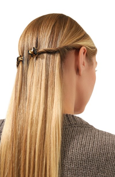 Серая заколка-краб из легкого полимера не затеряется в волосах, несмотря на минимальный в линии Vendome размер. Аксессуар заявит о своем присутствии блеском кристаллов Swarovski медового и графитового оттенков. Сиянию вторят золотистые бусины и трехмерная эмблема марки. В комплекте – такое же изделие.