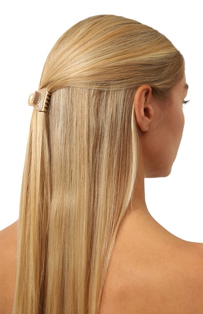 Бежевая заколка с закругленными золотистыми зубцами и сверкающими кристаллами изготовлена вручную из прочного гладкого ацетата. Упругая пружина защищена от влаги специальной накладкой. Небольшой аксессуар надежно фиксирует волосы в прическе, не повреждает их и почти не ощущается на голове.