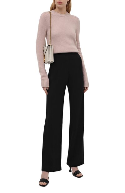Лаконичный однотонный пуловер оттенка чайной розы легко сочетать с вещами любого цвета. Например, наши стилисты предлагают носить его с белоснежными брюками и туфлями им в тон. Для изготовления модели с глубоким круглым вырезом мастера марки, основанной Гуччио Гуччи, использовали нежнейший кашемир. Изделие из такого мате риала комфортно облегает фигуру и едва ощущается на коже, а чтобы оно дольше выглядело безупречно, в пряжу добавили тонкий гладкий шелк.