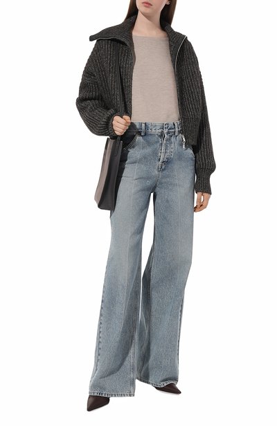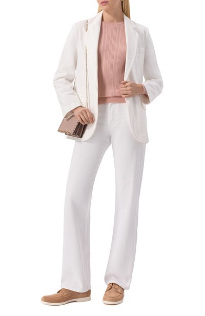 Лаконичный однотонный пуловер оттенка чайной розы легко сочетать с вещами любого цвета. Например, наши стилисты предлагают носить его с белоснежными брюками и туфлями им в тон. Для изготовления модели с глубоким круглым вырезом мастера марки, основанной Гуччио Гуччи, использовали нежнейший кашемир. Изделие из такого материала комфортно облегает фигуру и едва ощущается на коже, а чтобы оно дольше выглядело безупречно, в пряжу добавили тонкий гладкий шелк.