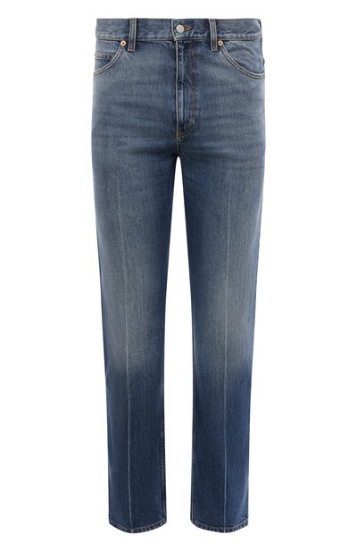 Синие прямые джинсы станут удачным вложением в базовый гардероб — на основе модели классического кроя с имитацией стрелок можно создать и расслабленные, и более строгие повседневные образы. Изделие сшили из прочного гладкого хлопка с естественными потертостями, а о принадлежности бренду говорит черный кожаный патч с логотипом сзади.