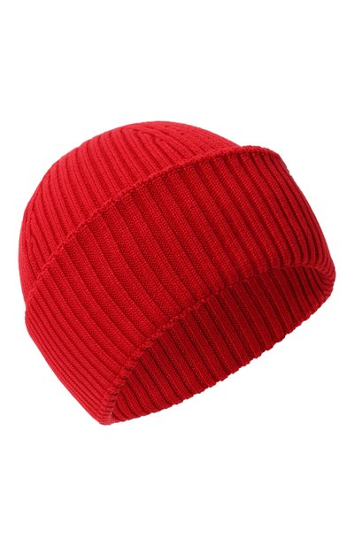 Шапку насыщенного красного цвета выполнили крупной эластичной вязкой, используя пряжу на основе прочного акрила. Нежные хлопковые нити в составе этого материала не только отвечают за мягкость, но и лучше пропускают воздух. Для декора бини с отворотом выбрали миниатюрный брендированный патч.