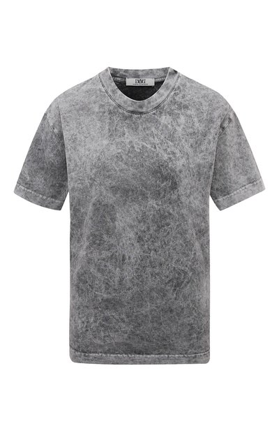 Для пошива серой футболки использовали мягкое хлопковое джерси, которое приятно ощущается на теле и хорошо пропускает воздух. Неравномерное окрашивание, сформировавшее мраморный узор, придает модели сходство с вещами из выбеленного денима. Изделие рифмуется и с джинсами, и с шортами.