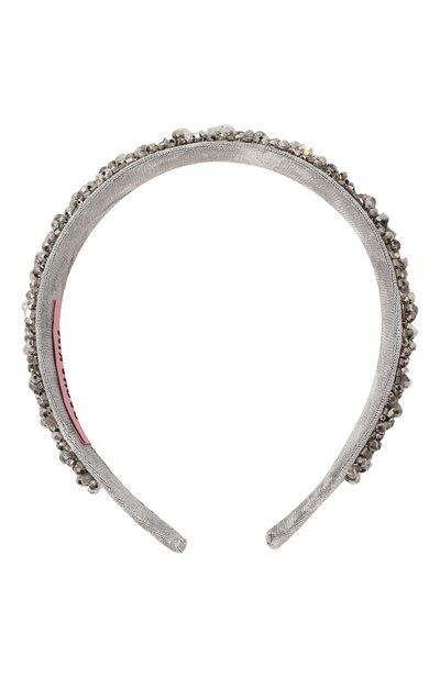 Широкий серебристый ободок мастера марки обтянули тонким фактурным текстилем с легким металлическим блеском. Ему вторит отделка из бисера и бусин разного размера. Основание из гибкого прочного материала обеспечивает удобную посадку, не сдавливая голову.