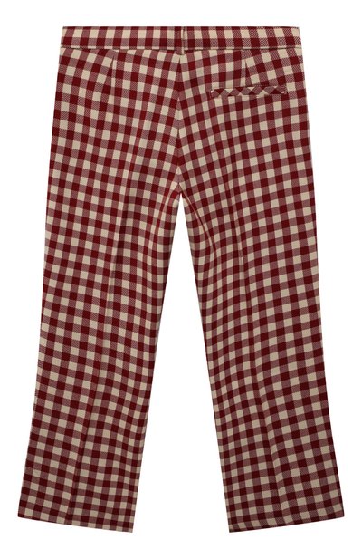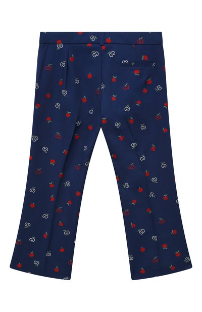 Боковые швы прямых брюк с защипами и стрелками украшены витым шнуром в оттенках бежевого. Декор перекликается с приглушенной палитрой жаккардового паттерна в виде цветов, фруктов и знаковых для марки символов. Слегка фактурный рисунок выткали на черном миксе прочного полиэстера, мягкой шерсти и тонкого шелка. Модель с потайной молнией и пуговицей дополнена эластичной внутренней вставкой на поясе.