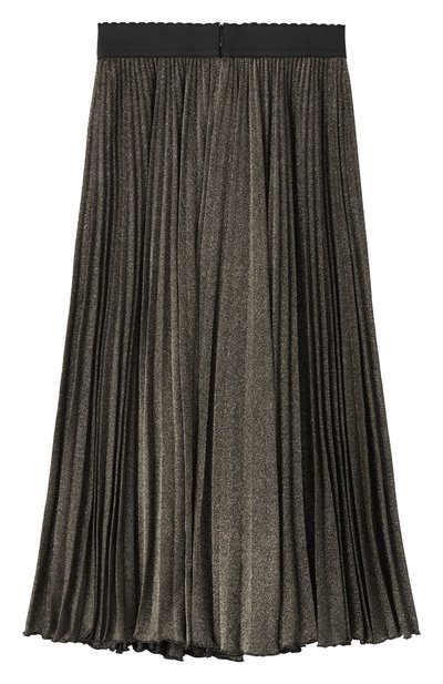 Плиссированная юбка сшита из мягкого материала на основе полиэстера, с добавлением шелка и вискозы. Изделие с узким поясом-резинкой украсили жаккардовым узором, в который вписали монограмму GG.