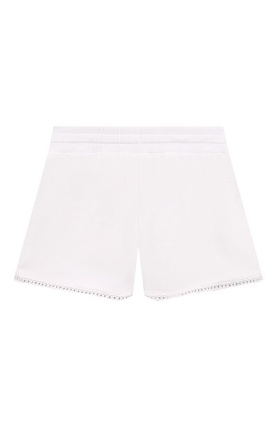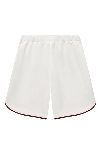 Белоснежные шорты сшили из мягкой приятной на ощупь ткани, обеспечивающей комфортный для тела микроклимат. Материал из отборных тщательно очищенных волокон хлопка с добавлением эластана почти не мнется и не препятствует циркуляции воздуха. Сзади модель декорирова ли разноцветной брендированной вышивкой в виде логотипа и знаковой ленты Web.