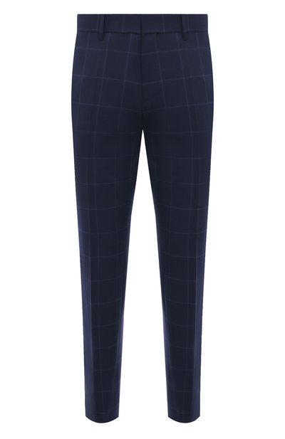 Темно-синие клетчатые брюки со стрелками сшили из тонкой костюмной ткани. В материале соединили волокна премиальной шерсти, полиэстер и эластан, поэтому модель не мнется, хорошо держит форму и сохраняет свободу движений. Такое изделие составит идеальный дуэт с пиджаком из похожего текстиля, а долю небрежности образу добавят поло и лоферы.