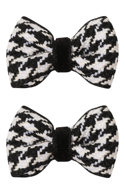 Основание резинки в виде черно-белого банта с узором пье-де-пуль мастера марки выполнили из плотного текстиля. Аксессуар хорошо фиксирует волосы в прическе, не повреждая и не спутывая их, почти не ощущается на голове и легко снимается. В комплекте — аналогичное изделие.