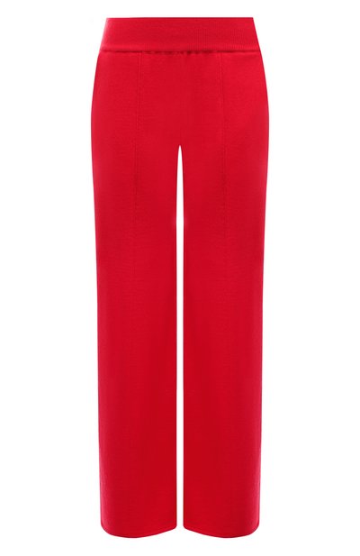 Для изготовления красных брюк прямого кроя мастера марки использовали легкий дышащий трикотаж. Материал связали из тонкой шерсти и нежного кашемира, поэтому изделие получилось особенно мягким и приятным на ощупь. Широкий эластичный пояс обеспечивает комфортную посадку на талии.
