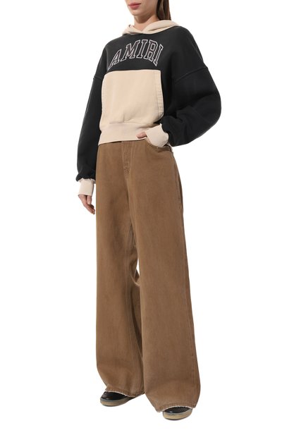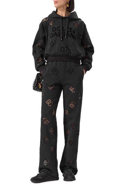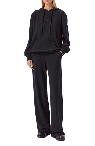 Худи с геометрическим жаккардовым узором выполнили из эластичного трикотажа Tech Rec Nylon плотностью 18 петель на дюйм, связанного из переработанного полиэстера. Модель с манжетами-митенками и капюшоном, стилизованным под горнолыжную балаклаву, украсили сбоку силиконовой лентой с логотипом Prada Linea Rossa.