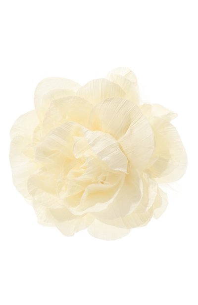 Мягкая текстильная резинка, не травмирующая волосы, даже простую прическу с хвостом сделает нарядной. Настроение задаст объемный декор в виде крупного цветка пиона нежного кремового оттенка. Мастера марки изготовили его вручную, вырезав лепестки из тонкой, почти невесомой гофрированной ткани.