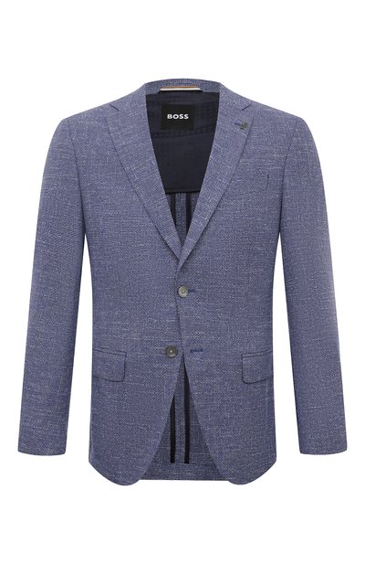 Дизайнеры бренда сделали синий однобортный пиджак более непринужденным, сформировав мягкую конструкцию без подкладки. Для пошива модели использовали фактурный меланжевый текстиль, сотканный из волокон отборного хлопка, шелковистой вискозы и прочного эластана.