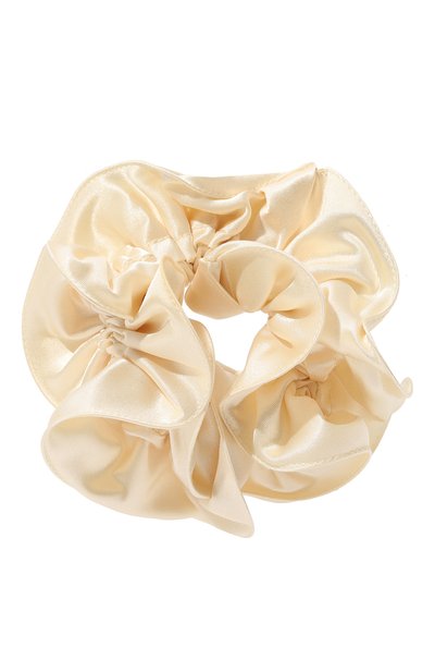 Для изготовления резинки кремового оттенка использовали легкий прочный атлас. Его характерный блеск добавляет цвету глубину, а самому аксессуару эффектное сияние. Эластичная основа не дает модели терять драпированную форму и плотно обхватывает пряди, не травмируя волосы.