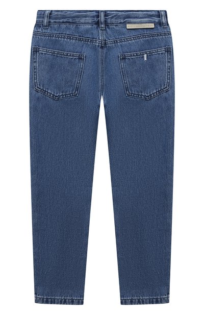 Для пошива прямых синих джинсов мастера марки использовали прочную ткань из гипоаллергенного органического хлопка, выращенного без применения химикатов. Чтобы придать паре слегка неравномерный оттенок, ее немного выбелили в готовом виде. Пояс сзади украсили узким черным патчем с логотипом.