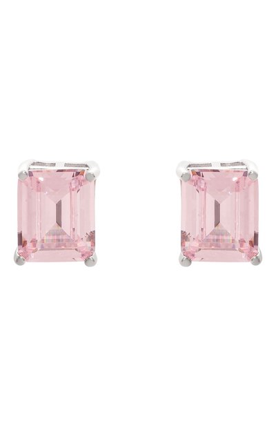 Небольшие серебристые серьги с застежками-пусетами, выполненные из ювелирного сплава, не раздражают кожу и не оттягивают мочку уха. Лаконичное украшение инкрустировано розовым полупрозрачным кристаллом, сияние которого перекликается с зеркальным родиевым покрытием металла.