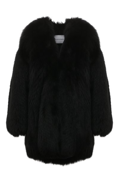 Укороченная шуба из арктической лисы окутывает тело мягкостью и приятным теплом. У этого меха очень длинная шелковистая ость и густая подпушь, которая способна согревать даже в суровые морозы. Пышная фактура создает иллюзию, что V-образный вырез обрамлен лацканами, а угольно-черный цвет помогает ярче проявить блеск материала. Модель прямого кроя застегивается потайными крючками.