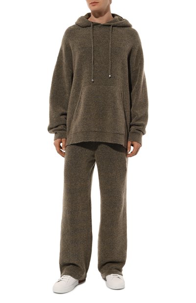 Коричневое худи выглядит так, словно прослужило уже не один сезон. Дизайнеры марки визуально состарили модель при помощи неравномерного окрашивания. Свободное изделие со спущенной линией плеч выполнили из мягкого хлопкового футера с фактурной изнанкой. Спереди разместили еле заметную вышивку в виде фирменной утки, поддержав узор крупными надписями сзади.