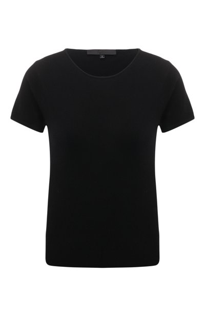 Светлана Тегин выбрала для изготовлени я черного пуловера мягкий кашемировый трикотаж. Пух для пряжи вычесывают раз в год, весной, у высокогорных коз, обитающих в суровом климате. Резкие перепады температур тех мест способствуют образованию нежного и теплого подшерстка. Лаконичная модель с короткими рукавами хорошо рифмуется и с джинсами, и с юбкой.