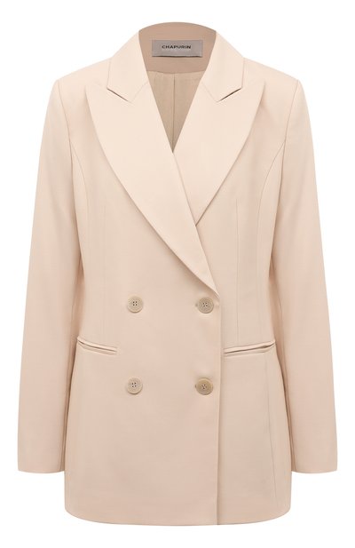 Двубортный блейзер нежного бежевого оттенка поддержит образы практически любой цветовой палитры. Для создания модели с широкими лацканами и двумя карманами Игорь Чапурин выбрал прочную костюмную шерсть, которая хорошо держит форму изделия и поддерживает комфортный для тела микроклимат. Благодаря нитям эластана в составе ткани и четко выверенному крою вещь будет безупречно садиться по фигуре.