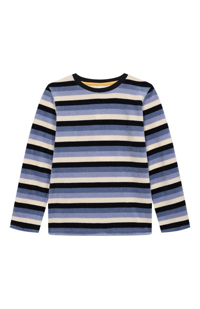 Создавая синюю пижаму, дизайнеры бренда противопоставили однотонные джоггеры лонгсливу с принтом на космическую тематику. Для пошива вещей использовали тонкий органический хлопок. Такой материал хорошо пропускает воздух, не вызывает аллергию и быстро отводит влагу, обеспечивая комфорт во время сна и домашнего отдыха.