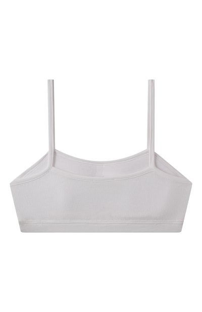 Белый бюстгальтер с плотными чашечками на косточках, плоскими регулируемыми бретелями и широким поясом удобно облегает фигуру и хорошо поддерживает грудь. Гипоаллергенный шелковистый трикотаж с неброским микроузором связали из гладких волокон органического хлопка, поэтому он не вызывает аллергию.