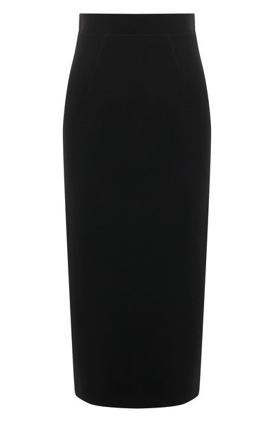 Черная юбка-карандаш в исполнении Ульяны Сергеенко получилась максимально лаконичной, поэтому органично впишется и в наряд для офиса, и в менее формальный образ. Для изготовления модели с широким поясом использовали мягкую фактурную ткань из отборной шерсти. Чтобы изделие с потайной молнией и крючками на поясе не сковывало шаг, сзади предусмотрели высокий разрез.