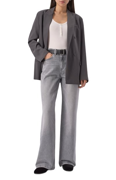 Серые широкие джинсы с градиентным эффектом, полученным окрашиванием в готовом виде, сделают повседневный образ более непринужденным. Для изготовления модели с классической посадкой мастера марки использовали мягкий плотный деним, не препятствующий циркуляции воздуха. На принадлежность марке указывает красный патч с тисненой эмблемой на поясе сзади.