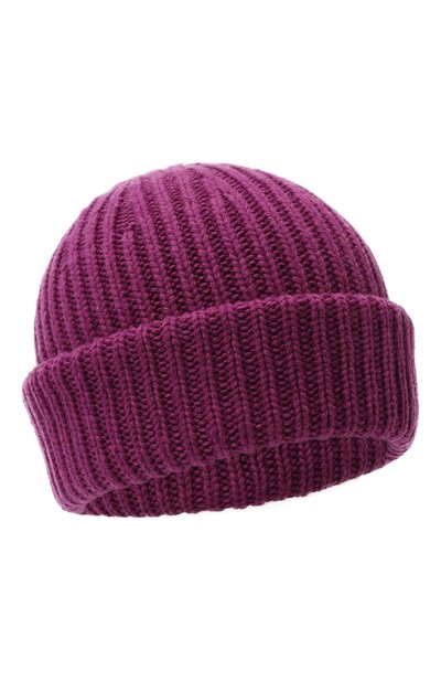 Фиолетовую шапку связали из мягкой шерстяной пряжи, которая сохраняет оптимальный мик роклимат. Чтобы сделать ее еще мягче и теплее, к многослойным волокнам добавили отборный кашемир. Благодаря плотному эластичному узору модель моментально подстраивается под контуры головы и не пропускает холодный воздух внутрь.