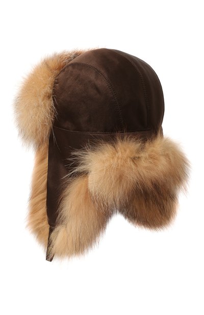 Создавая ушанку из плотной непродуваемой ткани, дизайнеры марки все внимание перенесли на подклад. Его выполнили из пушистого лисьего меха, который славится своей мягкостью. Длинный остевой волос больше отвечает за красоту — образует плавные переходы в оттенках коричневого и бежевого, а густой подпушек формирует объемный терморегулирующий слой. Сзади есть кулиска с фиксатором, помогающая отрегулировать посадку аксессуара точно по голове.