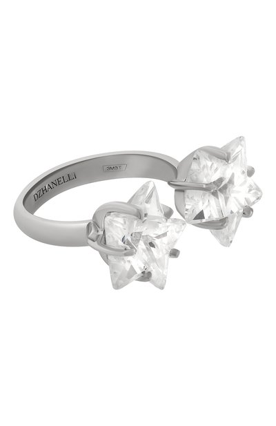 Это кольцо напоминает о своей принадлежности линии украшений Soviet Memories двумя пятиконечными звездами из белого кварца. Парный декор подчеркивает незамкнутую форму узкой основы из серебра 925-й пробы, которая остается почти невидимой.