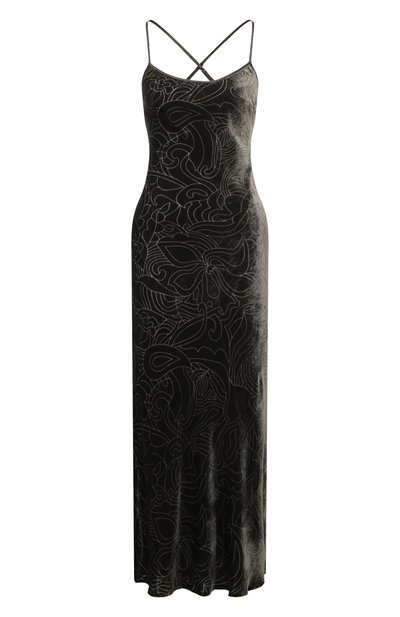 Для пошива длинной черной сорочки с растительным мотивом использовали нежный бархатистый текстиль на основе вискозы и шелка. Изделие из такого материала приятно ощущается на теле, поэтому в нем будет комфортно во время сна и отдыха. Глубокий вырез спереди перекликается с открытой спиной, которую подчеркнули шнуровкой.