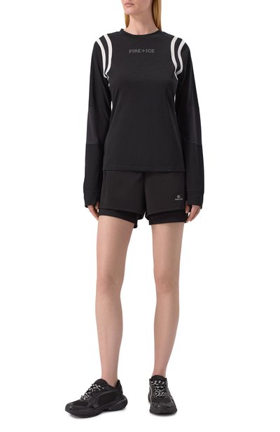 Синий лонгслив изготовили из мягкого тонкого трикотажа на основе мериносовой шерсти. Состав укрепили эластаном и нейлоном, используя при этом и переработанные волокна. Материал поддерживает комфортный микроклимат, хорошо согревая, но при этом пропуская воздух и быстро отводя от кожи излишки влаги. Модель выполнили так, чтобы она удобно садилась по фигуре, не стесняя движения.