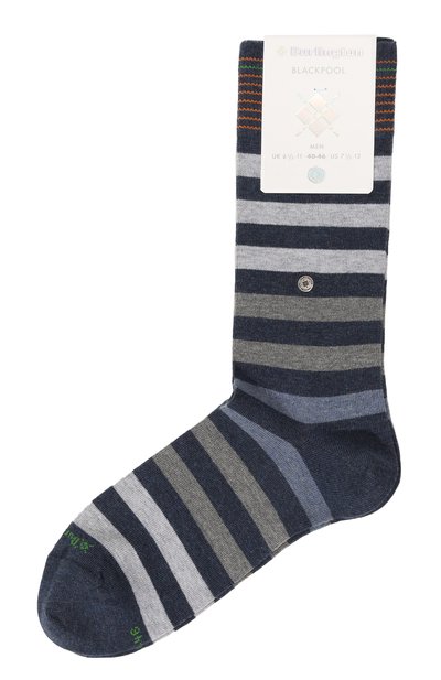 Создавая синие носки с меланжево-серой полоской, команда немецкой марки поддержала принципы ответственной моды. Обычный хлопок заменили более экологичным органическим и усилили мягкий трикотаж нитями переработанных полиамида и эластана. Одно из изделий украсили фирменной металлической заклепкой.