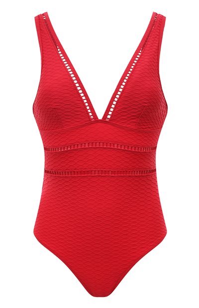 Красный купальник комфортно облегает фигуру, не прилипает к телу после намокания и быстро сохнет. Слитную вещь с фирменным подкладом Powermesh выполнили из приятной на ощупь ткани с фактурным орнаментом, визуально моделирующим силуэт. Глубокий вырез и линию талии подчеркнули полупрозрачными вставками. Слайдеры на бретелях гарантируют идеальную посадку на груди.