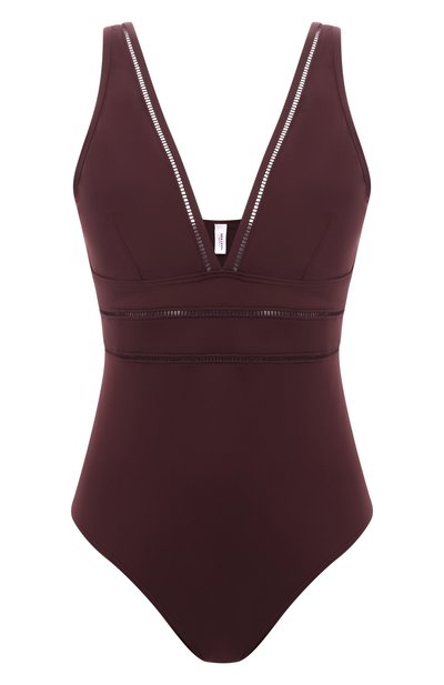 Слитный купальник The Essentials Edit из переработанного стрейчевого нейлона вошел в коллекцию Eco Essentials. Модель с подкладом Powermesh, мягкими треугольными чашечками и регулируемыми бретелями украсили перфорированным кантом.