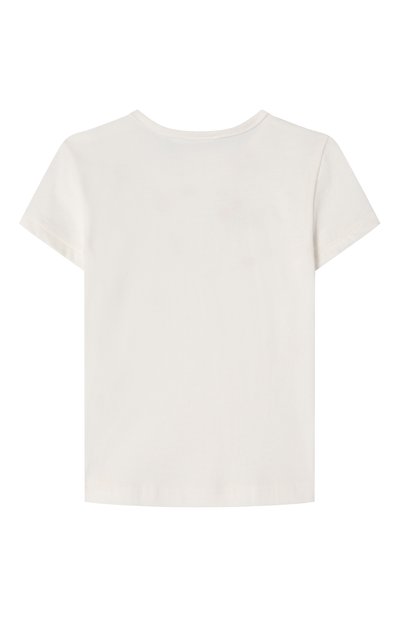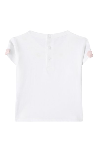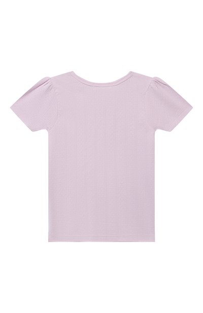 Футболку с драпировкой на рукавах выполнили из тонкого трикотажа с ажурным узором пуантель. Для изготовления пряжи использовали чистый хлопок.