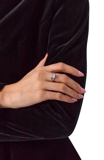 Кольцо из линии Cartoon напоминает украшения из мультфильмов увеличенной основой с круглым сечением, выполненной из стерлингового серебра с родиевым покрытием. Сходство усиливает будто парящий над аксессуаром голубой топаз, закрепленный четырьмя почти незаметными крап анами.