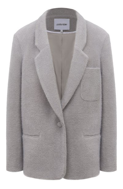Для пошива серого однобортного жакета в стиле 1960-х Олеся Шиповская выбрала мягкую приятную на ощупь ткань с коротким шелковистым ворсом. Прочный материал с добавлением гладкой вискозы почти не мнется и долго не теряет идеальный внешний вид. Наши стилисты предлагают создать монохромный образ с парным жилетом и юбкой-карандашом.