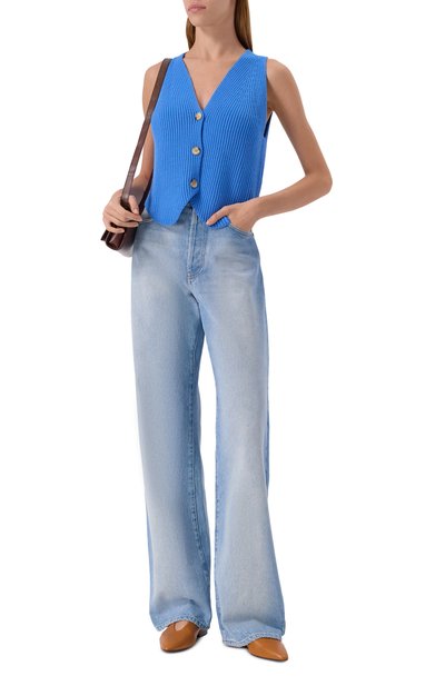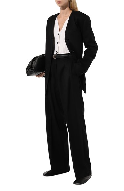 Черный жилет органично впишется в образ любой степени формальности. Например, наши стилисты предлагают носить его с длинной юбкой, бомбером и туфлями на шпильке. Для изготовления модели Олеся Шиповская выбрала рифленый эластичный трикотаж на основе нежной шерсти, которая не колется и поддерживает оптимальную температуру. В пряжу добавили прочный легкий акрил, поэтому изделие долго не потеряет изначальный вид.