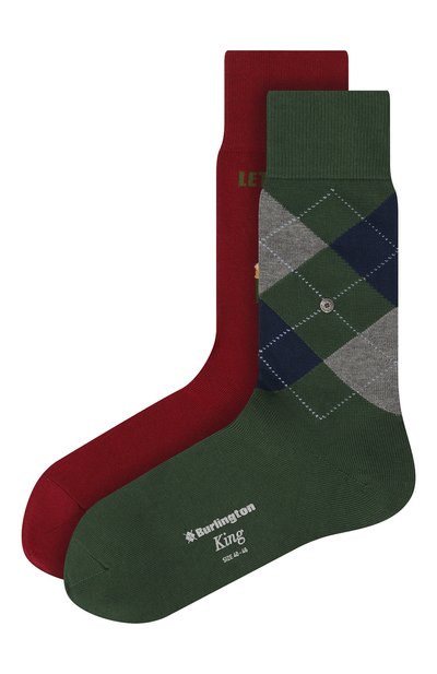 Для изготовления зеленых носков с фирменным клетчатым мотивом аргайл использовали эластичный трикотаж на основе мягкого отборного хлопка. Материал хорошо пропускает воздух, быстро отводит влагу и оптимально тянется, поэтому изделие комфортно облегает стопу. В комплекте – бордовая пара с жаккардовым мерцающим узором в виде Щелкунчика и надписи.